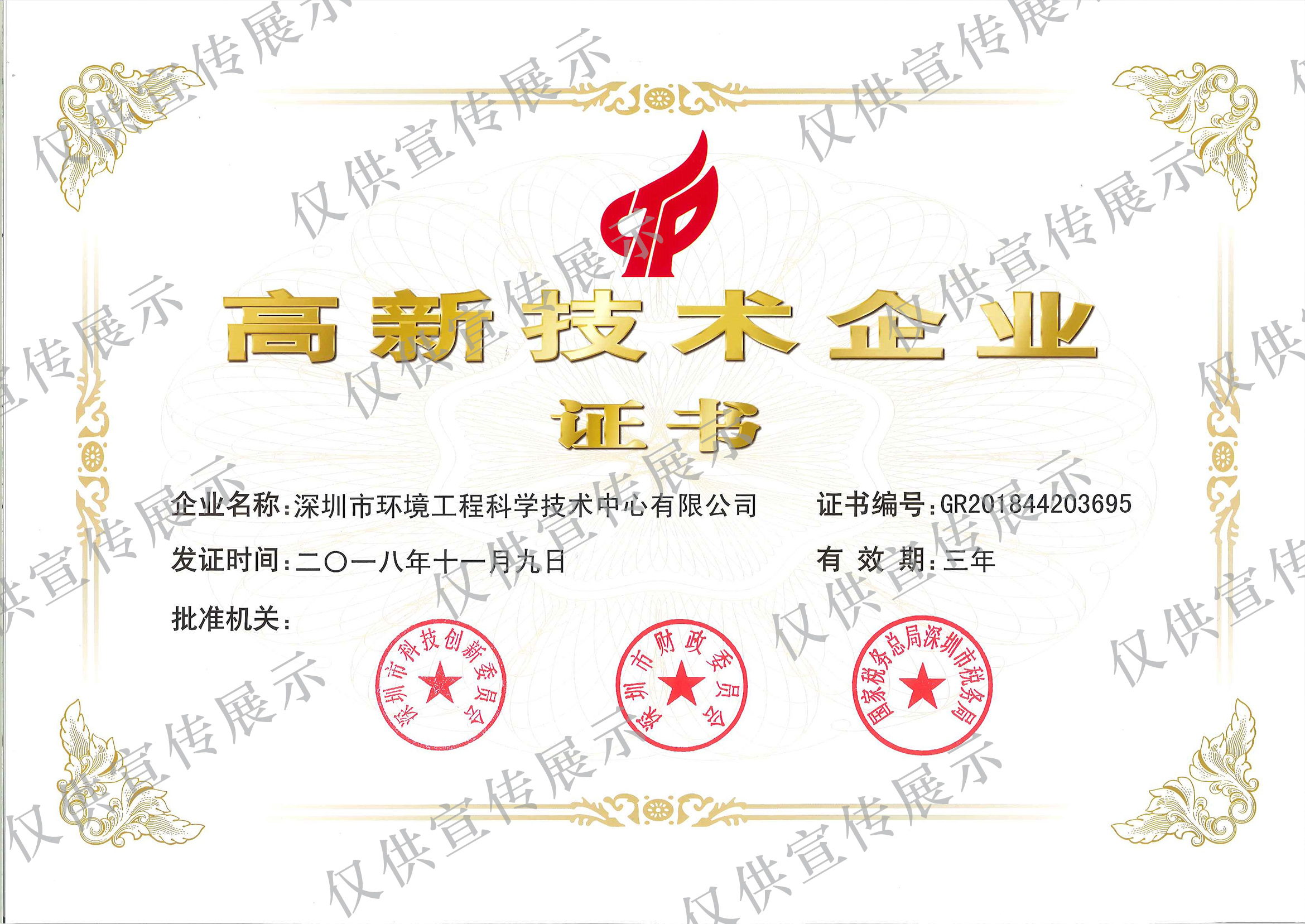 國家高新技術企業證書